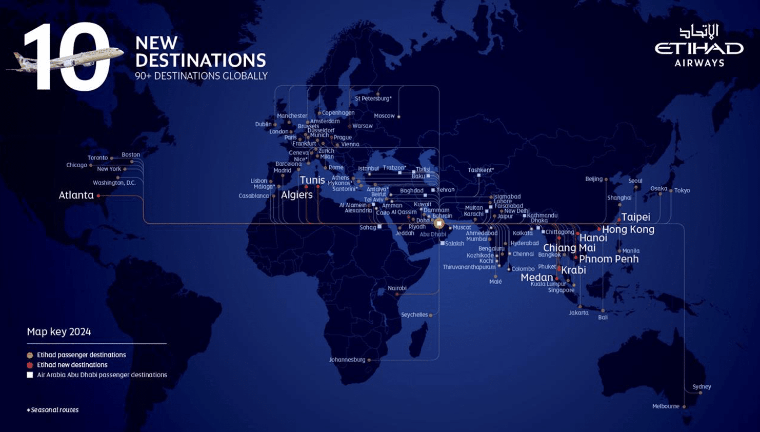 The ten new routes will complement Etihad’s previously revealed new destinations for 2025: Prague, Warsaw, and Al Alamein.