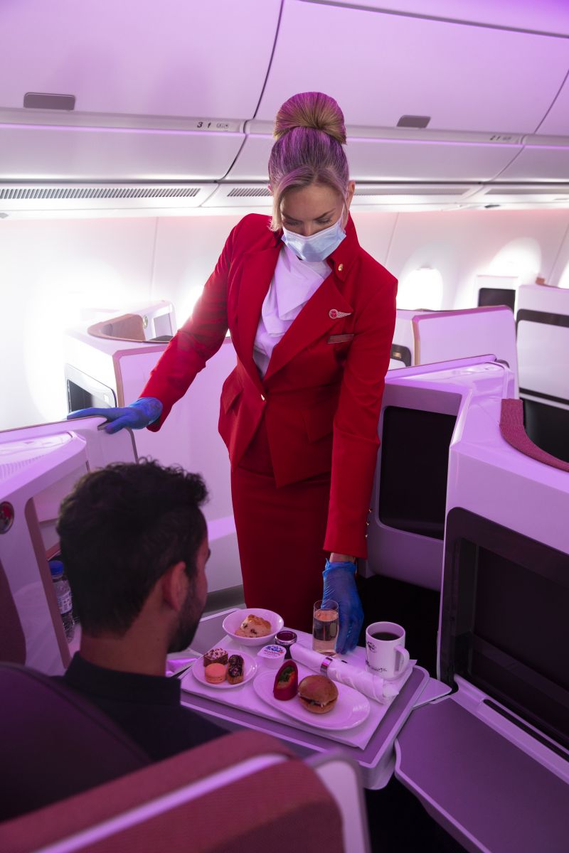 - A hot food service in all cabins with Economy and Premium Economy customers offered a food box and Upper Class customers provided with a tray service;