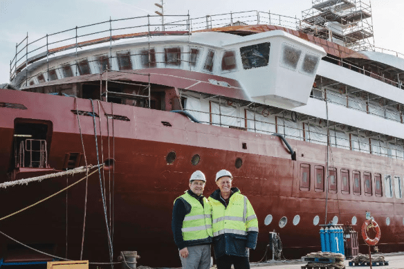 It emerged from the building dock at the WestSEA Shipyard in Viana do Castelo, Portugal.