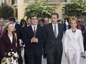 Minister for Tax and the Economy Elena Salgado, President of the Balearics Government, Francesc Antich, José Luis Rodríguez Zapatero, and Deputy Prime Minister, María Teresa Fernández de la Vega, in Palma de Mallorca Friday