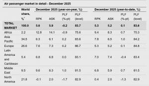 The International Air Transport Association (IATA) released 2025 full-year and December 2025 passenger market performance showing record high demand.