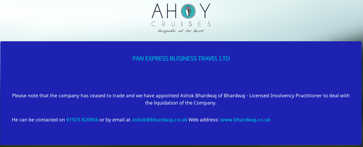It traded under the names Pan Express, Pan Express Travel, Pan Express Business Travel, Ahoy Cruises, Ahoy Holidays and Ahoy Getaways and held an ATOL licence.
