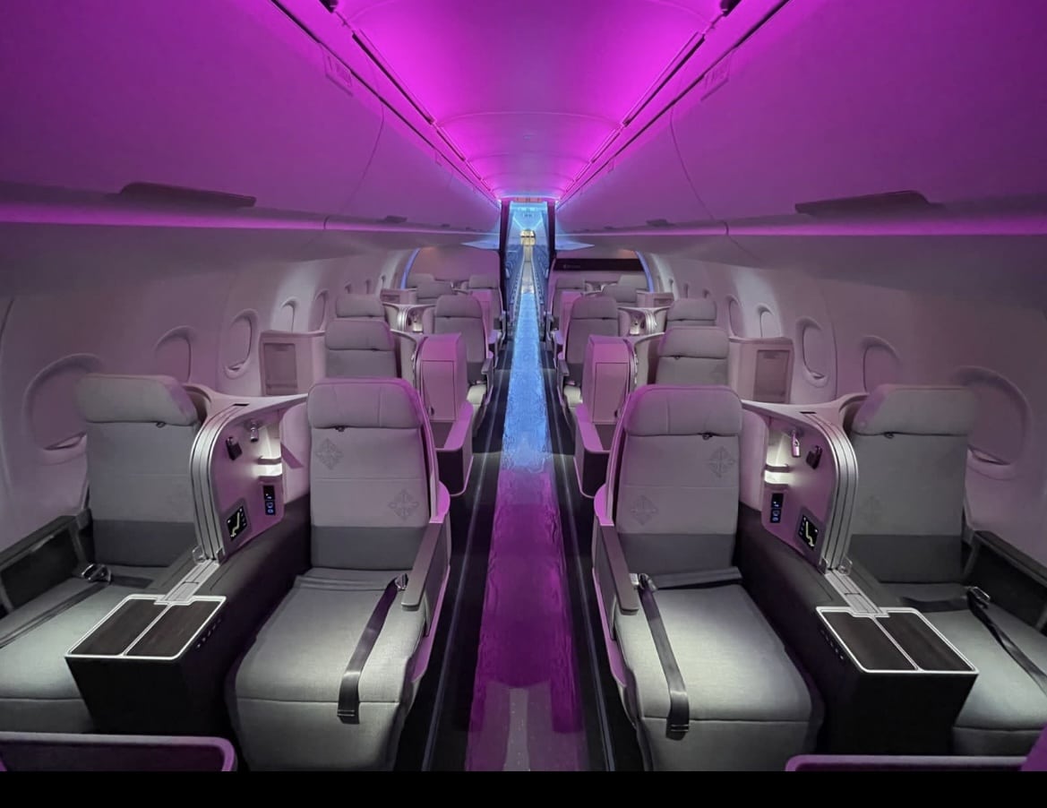 The Airbus A321LR is configured with 150 economy class seats and 16 in business class, four of which offer increased space with only one seat rows.
