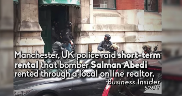 The ad cites the story of suicide bomber Salman Abedi, who reportedly stayed in a rental home while planning the attack on an Ariana Grande concert in Manchester.