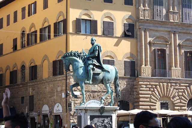 The man drove a red Ferrari into the pedestrianized Piazza della Signoria in Florence.