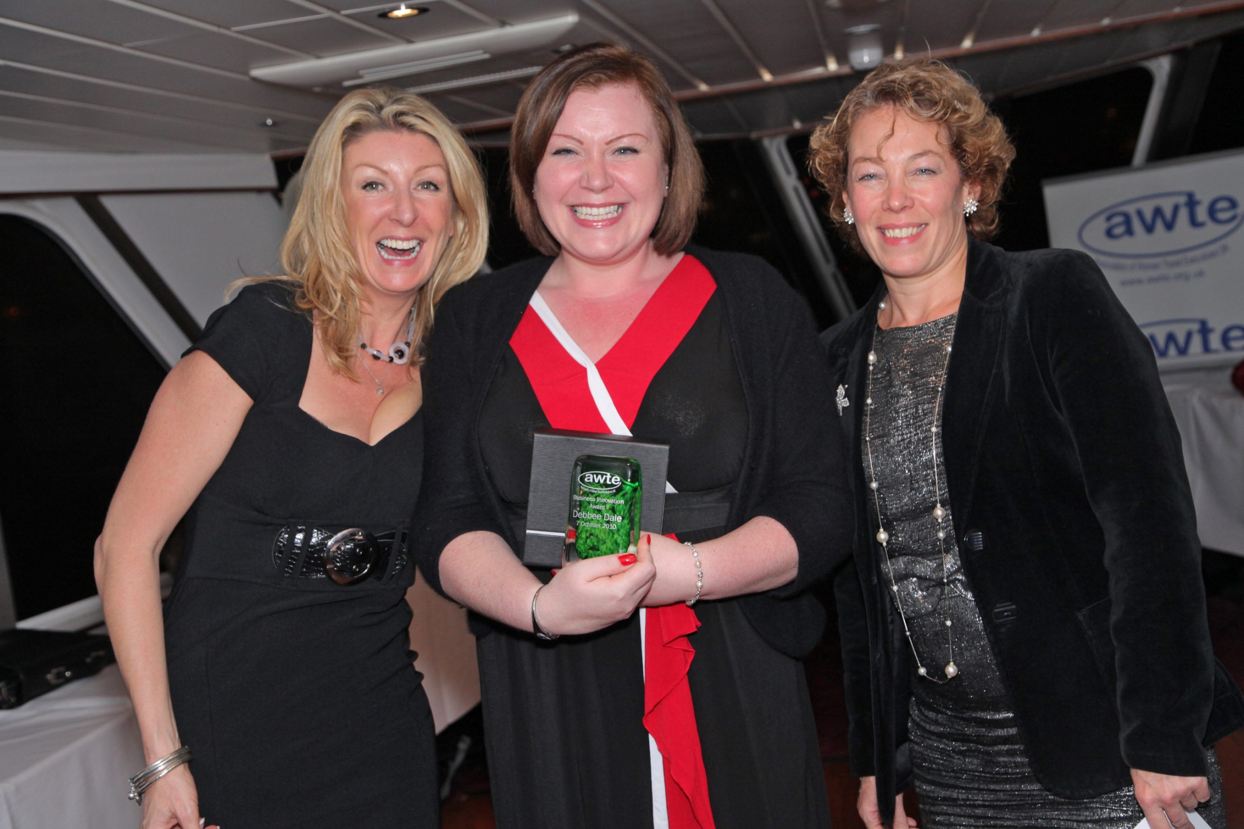Award winning Debbie Dale (centre) with Lorraine Barnes-Burton (left) and AWTE Chair Karen Ramirez