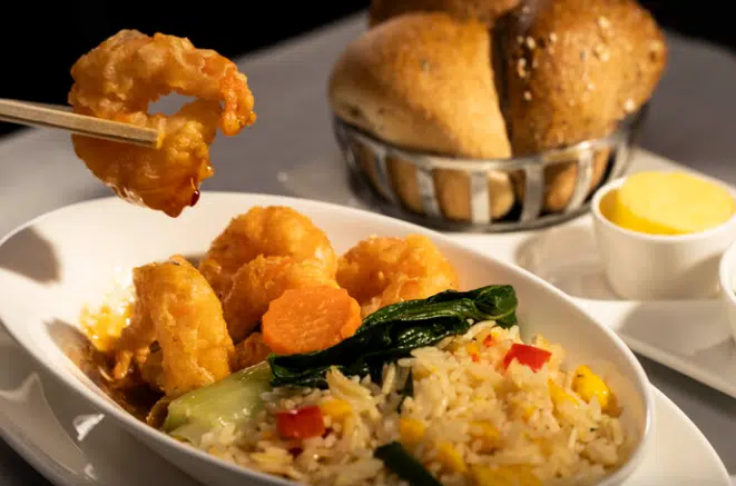 Those travelling in Club World (business class) can order spicy Kung Pao prawn.