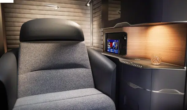 For customers in the centre of the cabin, the divider slides open to create a shared lounge space, and the stowable tables mean customers can enjoy ‘buddy dining’ in the seat with their travel companion.