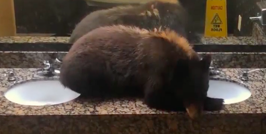 A young black bear was found in a hotel bathroom in Montana, USA.