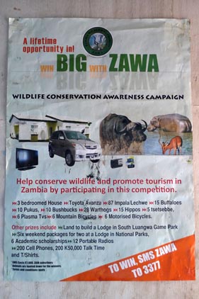 Note the footnote at the bottom of the competition poster saying “animals are to be hunted down for the winners” – hardly helping to conserve wildlife and promote tourism in Zambia.