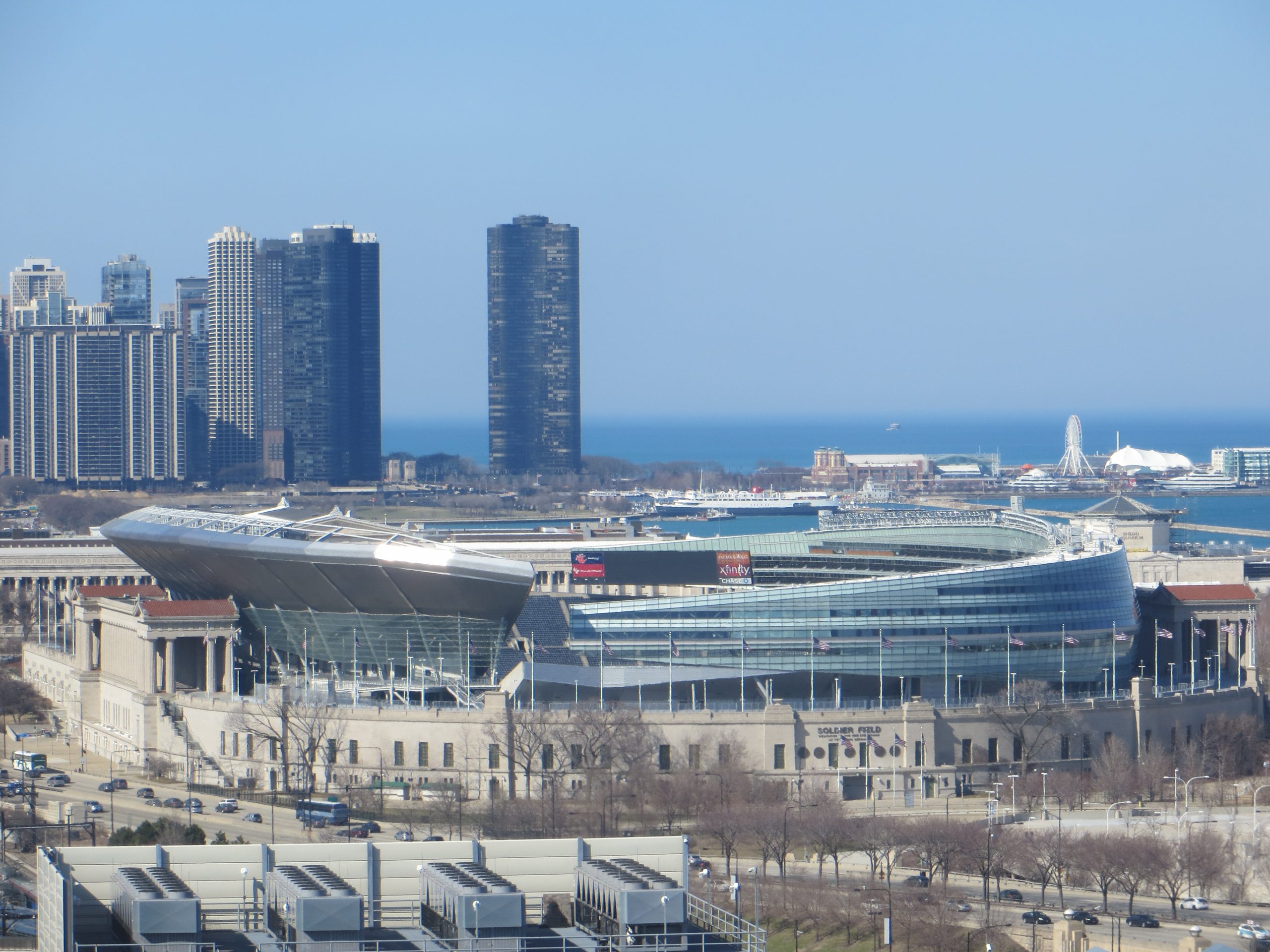 Soldier Field with Lake Michigan in the background