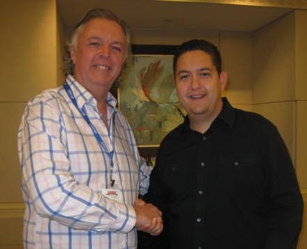Rafael Cardoza of Comfort Suites is congratulated by Graham McKenzie