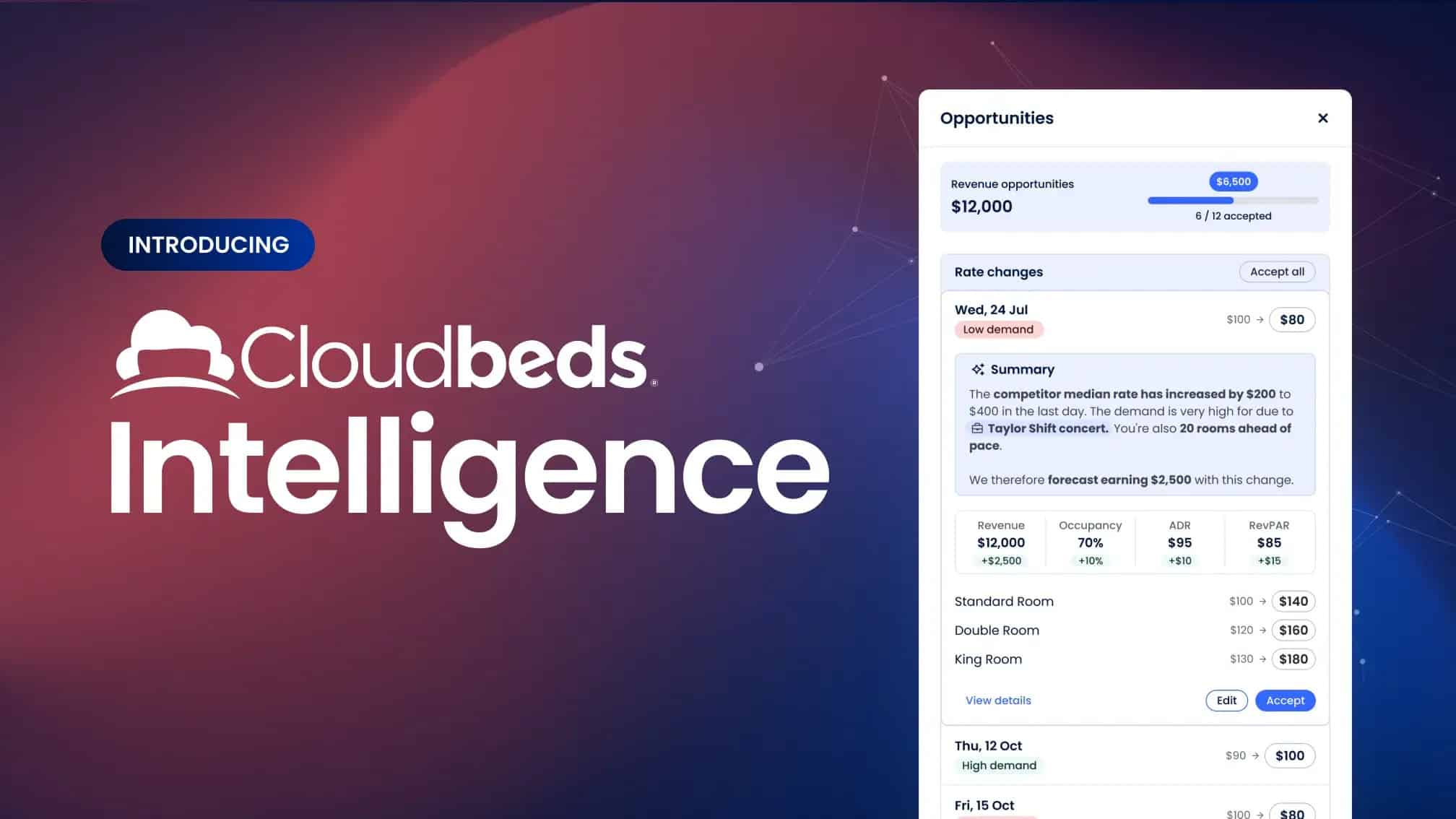 By leveraging rich datasets from Cloudbeds and its partners, Cloudbeds Intelligence will empower hoteliers to take actionable steps to boost revenue, optimize their operations, and improve guest satisfaction.