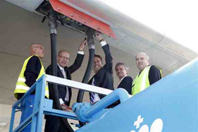 Passengers included State Secretary of Infrastructure and the Environment, Joop Atsma. The aircraft was partly flying on sustainable fuel made from Used Cooking Oil.