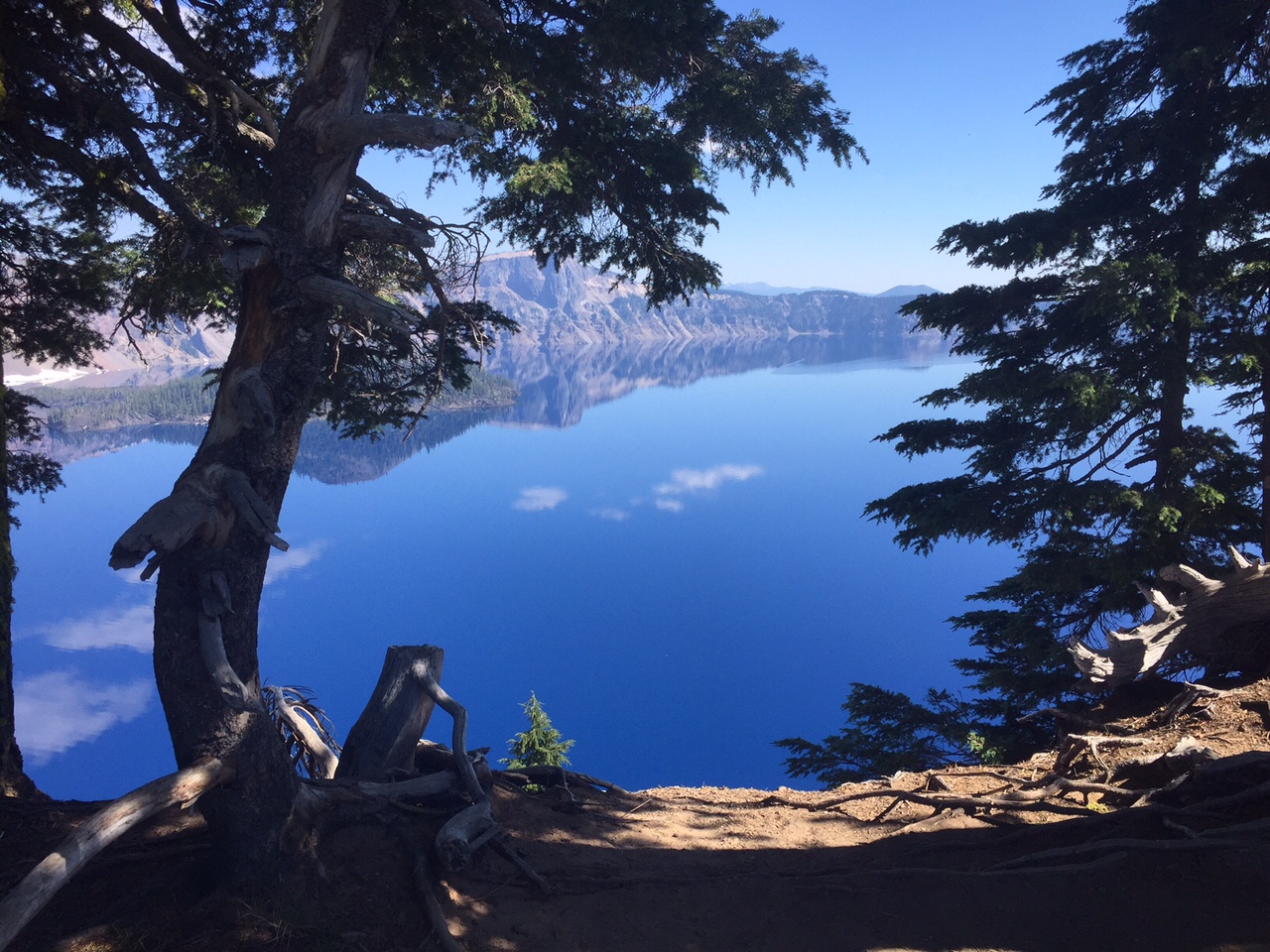 We hike a small way around the 33-mile rim then plonk down on a tree stump to eat our sandwiches and stare meditatively into the water’s clear 1,943ft depth. That’s America’s deepest lake – if you placed New York City’s One World Trade Centre at Crater Lake’s deepest part, there would still be 151 feet of water above the tower’s highest point. Yet, filled entirely with snow melt and rain water and with no river or inlet feeding into it, Crater Lake rangers say you can see for hundreds of feet down.