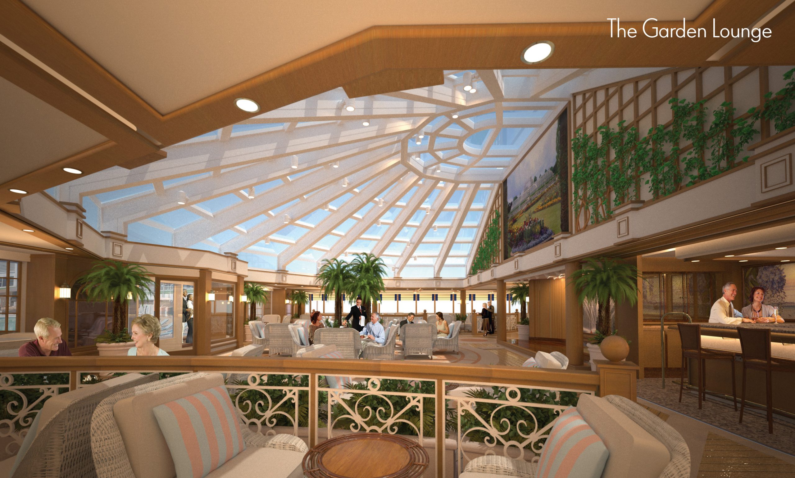 The Garden Lounge with a vaulted glass ceiling has been inspired by the glass houses of Kew Gardens in London.