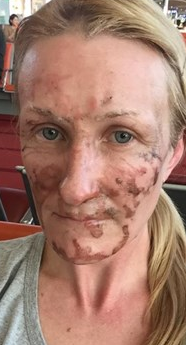 "One of the chefs jumped over the counter and him and a customer bundled me to the ground and rolled me around to put out the flames. I opened my eyes to see everybody staring at me and there were all of these children screaming. My face was really painful and felt very hot."