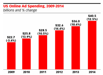 The digital ad business is nothing but the ad business with the exclusion of separate silos for the interactive media. It is believed that the online faster growth will push total US ad expenses from 15.3% in 2010 to 21.5% in 2014.