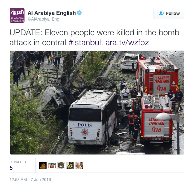 The bomb exploded during this morning’s rush hour in the Vezneciler district of Istanbul, close to tourist attractions and Istanbul University.