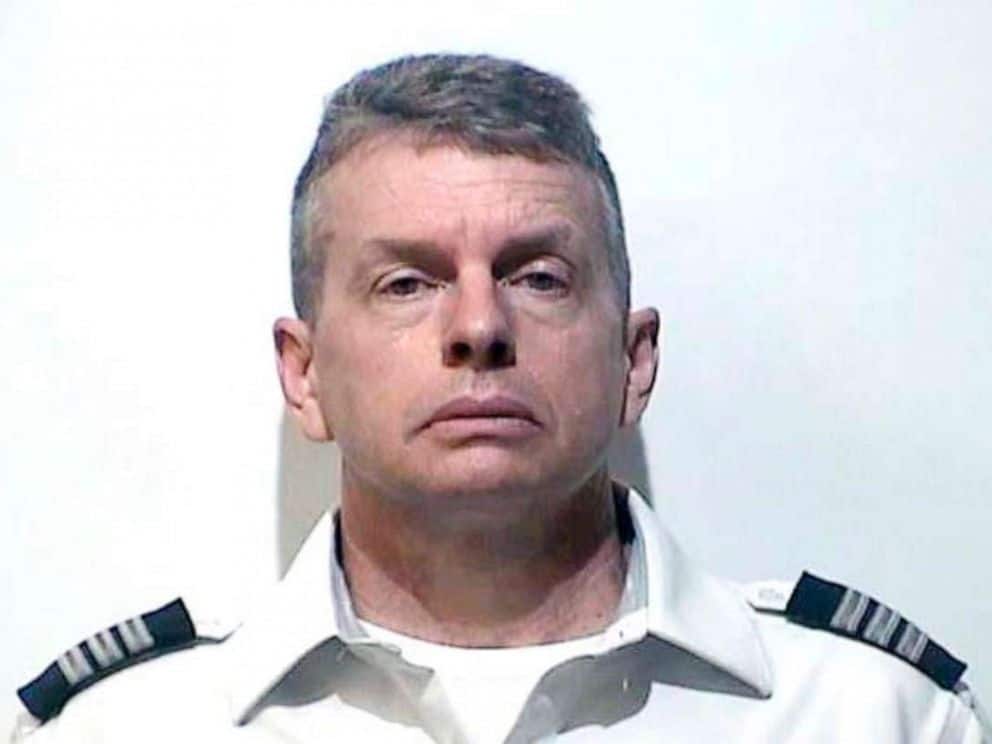 Martin was taken off a plane in handcuffs at Louisville Airport in 2019 and was later charged. He was still wearing his pilot uniform for the arrest mugshot.