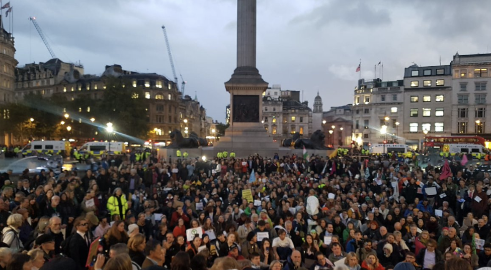 Around 1,000 people gathered in Trafalgar Square for a peaceful protest on Thursday night.