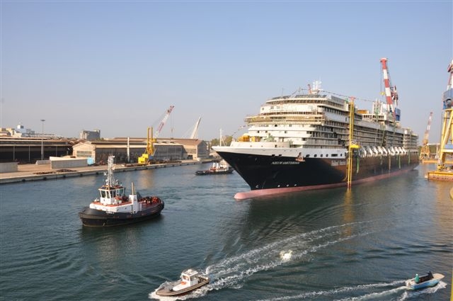 Holland America Line’s new ship Nieuw Amsterdam has been floated out of its dry dock in Italy where it is under construction.