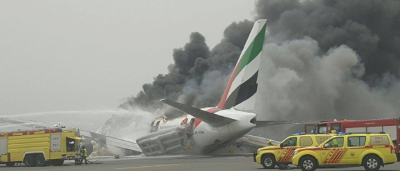 Flights to and from Dubai International Airport continue to be disrupted after an incident yesterday when an Emirates flight with 282 passengers, including 24 Britons, crash-landed on the runway and caught fire.