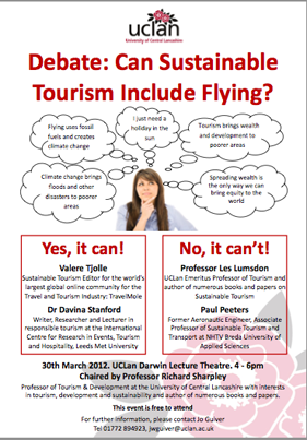 The clash of opinions will be aired in a debate on 30th March at the University of Central Lancashire, where two staunch advocates of not flying will take issue with two believers in the power of tourism to bring sustainable development to developing countries and other destinations.