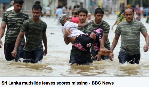 More than 134,000 people have been evacuated to safe locations. A mudslide that hit two villages less than 50 miles from the capital Colombo killed at least 16 people. In Aranayake 13 bodies were recovered but the Red Cross believes many more are trapped under the mud. In nearby Bulathkohupitiya, three casualties have been confirmed.
