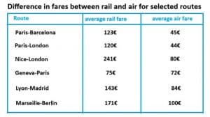 France-Europe rail fare on average 2.5 times more expensive than an air fare