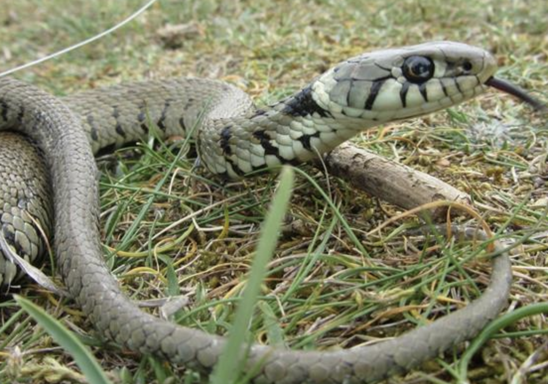 The reptile turned out to be a small grass snake which somehow slithered up stairs or an exterior wall and inside the second floor guest room.