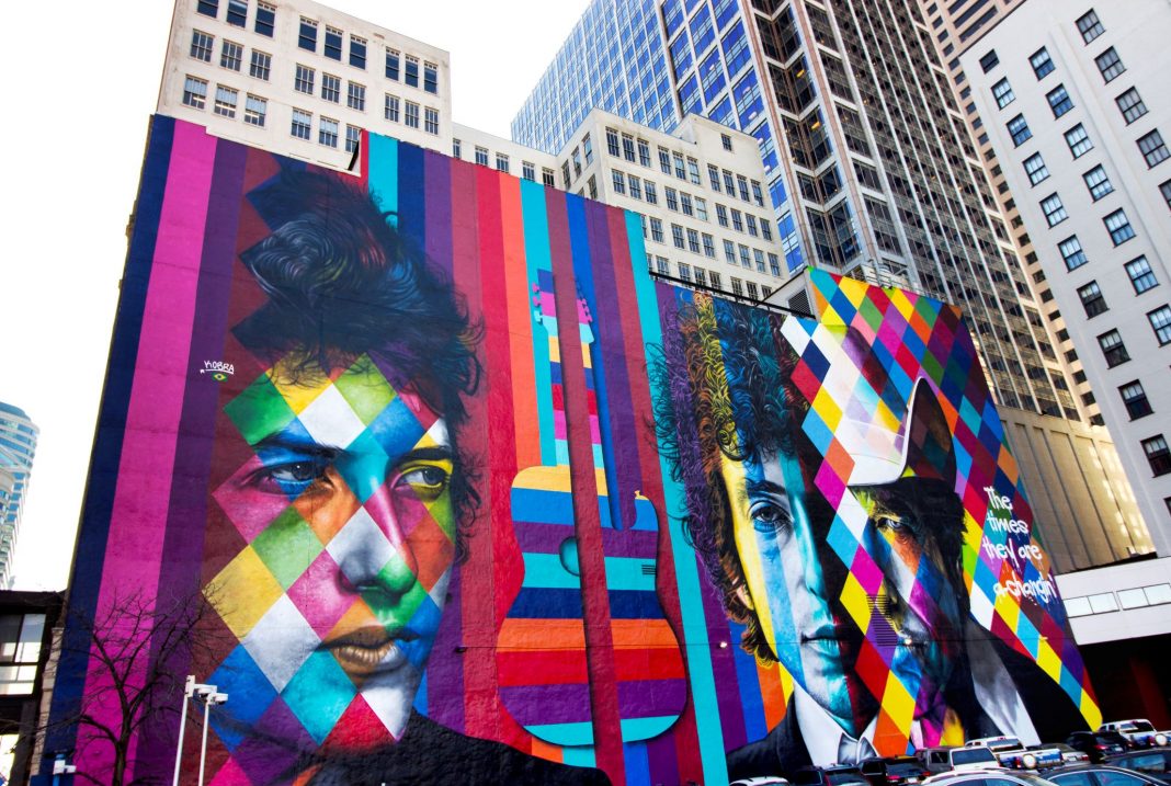 The Eduardo Kobra mural, “The times they are a’changin,” is located at Hennepin Avenue and 5th Street