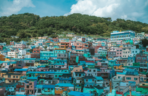 Navigate the streets of Busan’s, Gamcheon ‘Culture Village’ which is now home to art galleries, cafes and more.
