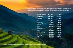 Maria Margarita Montemayor Nograles – It’s a good question. It is true that foreign tourist arrivals -including overseas Filipinos- are slightly down at -2.3% compared to 2024 from January to October. We experience weaknesses from some Asian markets such as China, Indonesia, South Korea or Vietnam. But Europe, North America and Australia perform very well.