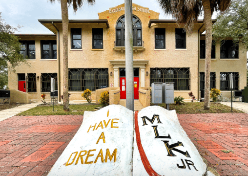 The historic Excelsior School Building, the county’s first public high school for Black students, now home to the Lincolnville Museum and Cultural Center. Saved from demolition in the 1980s, the building stands as a testament to community preservation efforts.