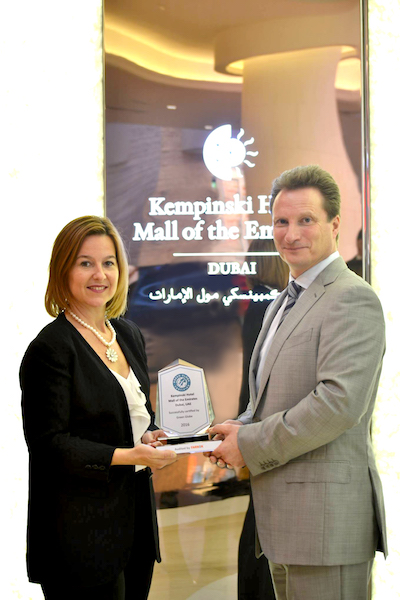 "Green Globe certification formally recognises the Kempinski Hotel Mall of the Emirates’ green practices, and this has become an increasingly important factor for consideration by both leisure and business travellers. It also improves Kempinski Hotel Mall of the Emirates’ expertise and selection of partners who share the same sustainable ideologies," concluded General Manager Payne.