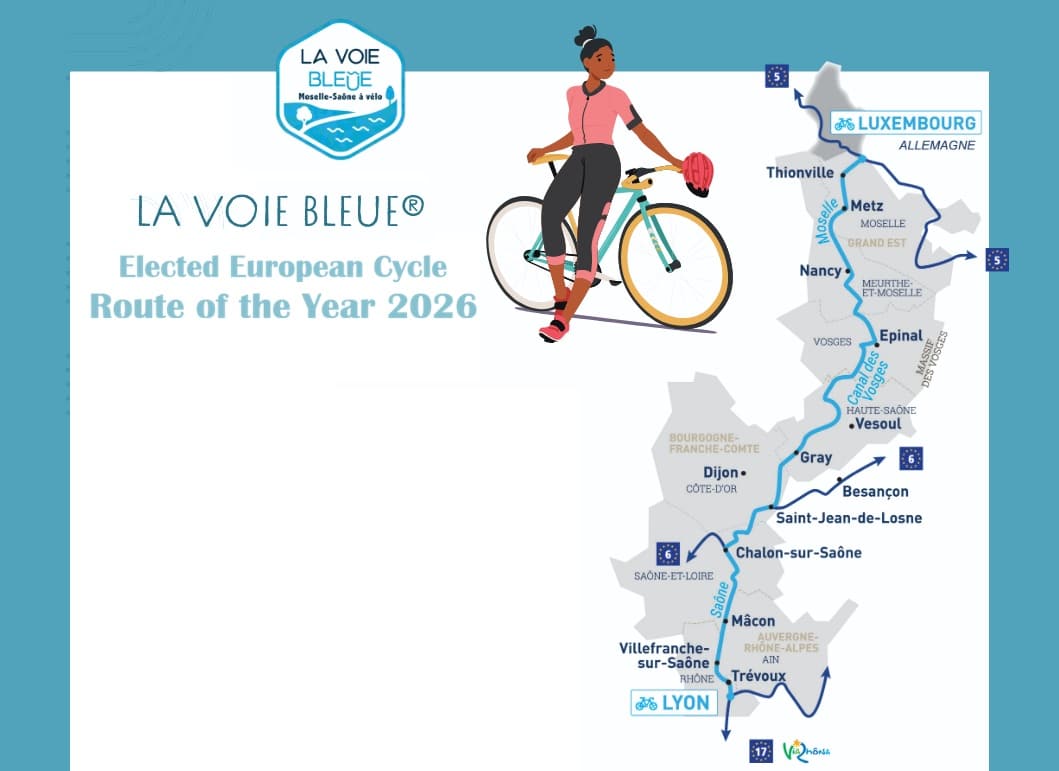 La Voie Bleue, Moselle–Saône à Vélo, has been crowned European Cycle Route of the Year 2026 at the Fiets en Wandelbeurs exhibition in Utrecht. The accolade further cements the 700-kilometer French cycling route as one of Europe’s standout long-distance bike experiences.