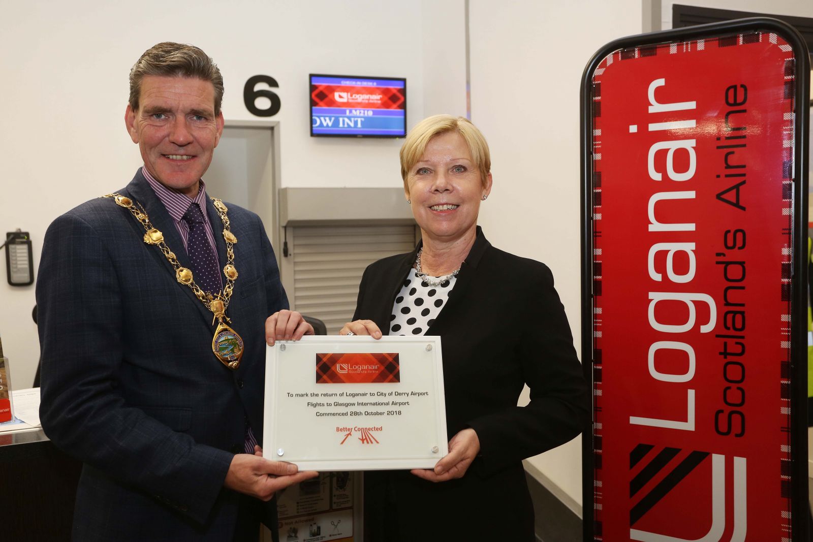 Loganair commercial director Kay Ryan and Derry City Mayor John Boyle (pictured above) celebrated the new route.