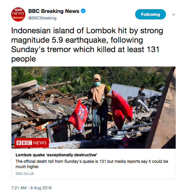 "There is a risk of aftershocks, which could cause further damage to buildings and pose risks to safety," it said. "In the event of serious injury, access to immediate medical assistance on the [Gili] islands is extremely limited."