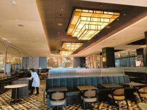 Designed by the interior architecture firm Iria Degen Interiors, the Luxembourg Marriott reinterpreted all the details of the Art Deco building in a timeless contemporary style. Petrol blue, beige, brown, and dark green colors match the hotel’s paintings, the stain-glassed windows or the rosewood furniture.