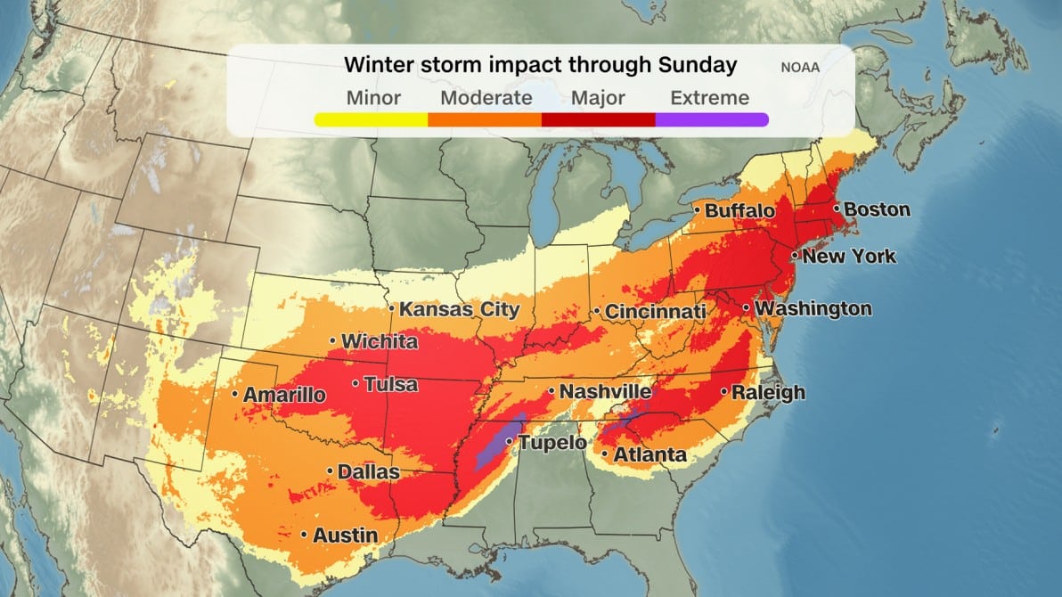 According to the website Flightaware, which tracks air movements including cancellations and delays, the USA alone experienced on Friday and Saturday 9, 337 cancelled flights on Friday and Saturday. Sunday will see another wave of heavy cancellations as the storm is due to continue until Monday. This number is one of the worst every seen in the USA in recent years.