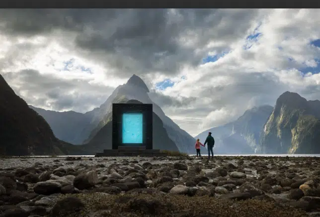 Another portal has also appeared in London in the form of a hand painted mural, created by Global Street Art, providing a gateway to the scene in Milford Sound.