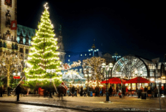 The festive tour highlights include visits to Ghesenmarkt Square, Town Hall Square, Spitalerstraße and Gerhart-Hauptmann-Platz which has iconic wooden cabins.