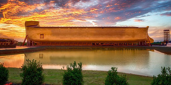 The park features a 510-foot-long, seven-storey wooden replica of Noah’s Ark, filled with exhibits, and also has a zoo.