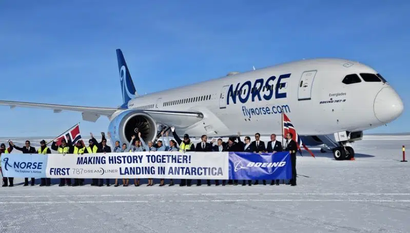 Norse Atlantic Airways has marked a company milestone by landing a Boeing 787 Dreamliner in Antarctica.