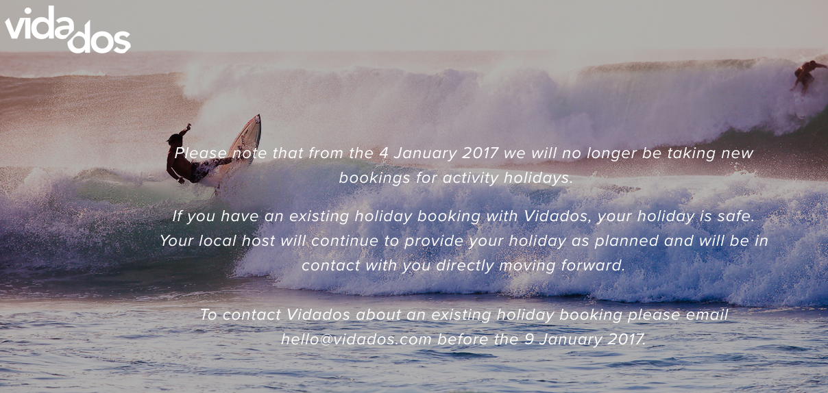 A website dedicated to selling independently-run activity holidays has ceased trading, blaming ‘unforeseen circumstances’.