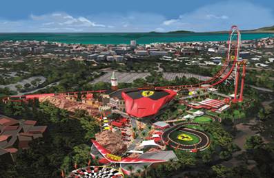 The new park, developed in conjunction with the Italian car maker, is expected to boost visitors to PortAventura.
