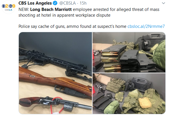 Rodolfo Montoya, 37, a cook at a Marriott hotel near Long Beach Airport, California, was arrested and police believe a threat made to shoot up the hotel was very real.