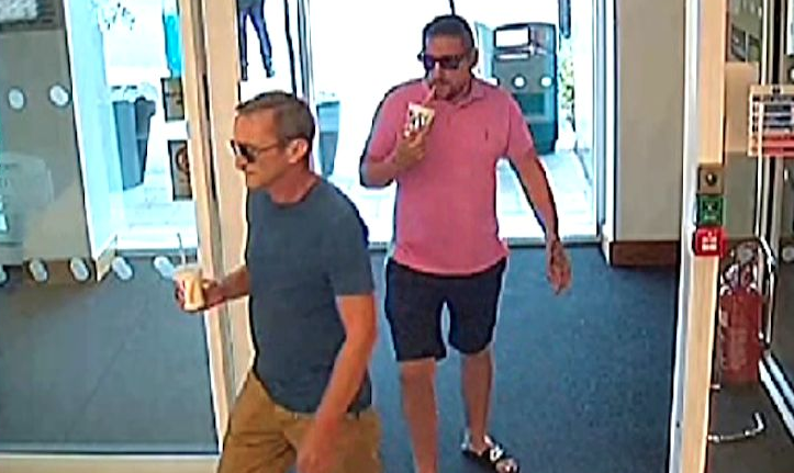 The second suspect is described as white, of slim build, with short brown or grey hair. He was wearing a navy T-shirt, beige shorts, white trainers and white socks.