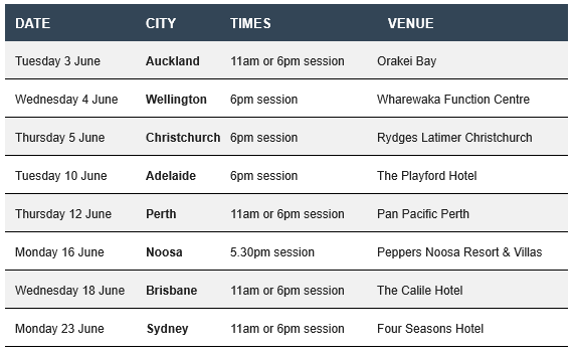 The Australia Discovery Sessions roadshow includes events in Adelaide, Perth, Noosa, Brisbane and Sydney.